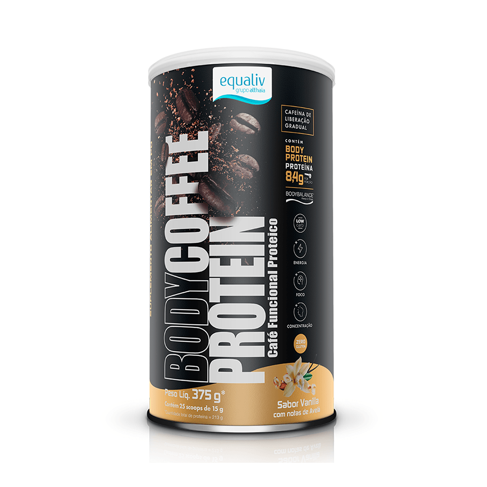 Body Coffee Protein é o 1º suplemento alimentar de café realmente funcional. São ingredientes selecionados com o máximo critério farmacêutico e qualidade nutricional para um maior e mais rápido alcance da performance para o seu dia a dia. Além de seu sabor Vanilla com notas de avelã, contém o poder da cafeína, combinado com a força da proteína mais tecnológica do mercado, o Body Protein, e um blend de ingredientes estrategicamente selecionados para uma rotina de alta performance: TCM, Taurina, Cúrcuma, Pimenta-preta e Canela. A cafeína é uma ótima opção para quem exige muito do seu potencial no dia a dia, devido ao poder de aumentar a contração muscular e potencializar a tolerância ao esforço físico intenso, além de diminuir a fadiga. Já a proteína é essencial para o nosso corpo, para o ganho de massa magra, perda de gordura, aumento da força, além de recuperação pós-treino.