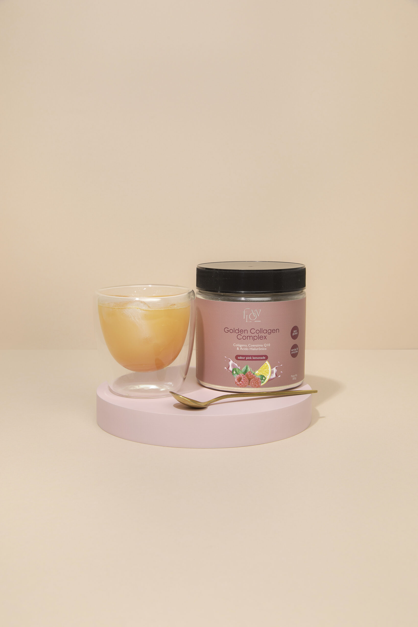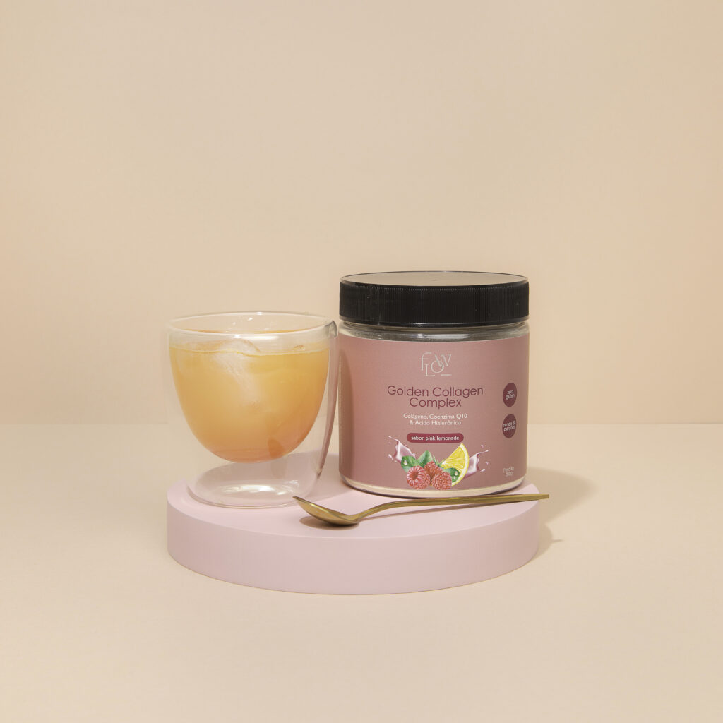 Suplemento alimentar de colágeno, coenzima Q10, resveratrol e ácido hialurônico.